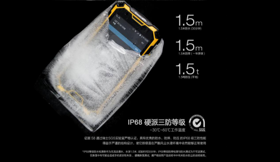 CONQUEST征服S8,炫酷機(jī)身,高亮IPS液晶屏,表面硬度高達(dá)9H,玻璃蓋采用美國康寧大猩猩4代防爆玻璃蓋板,讓其具備優(yōu)秀的三防性能,使它在極寒的惡劣環(huán)境下依然能夠正常使用,CONQUEST征服S8通過瑞士SGS實驗室嚴(yán)格認(rèn)證,并取得IP68級三防等級證書,具備1.5米防水泡、1.5米防摔、99.9%防塵等三防特性,以這樣的專業(yè)品質(zhì)被《流浪地球》選中并出鏡。