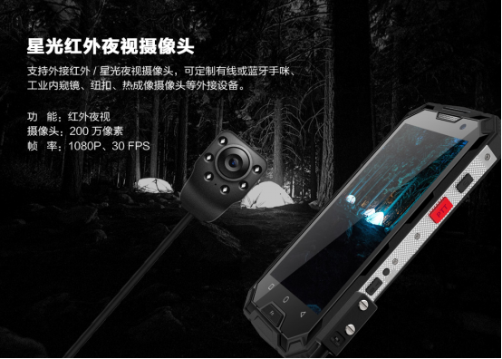 專用外接接口可外接紅外/星光夜視攝像頭,可定制工業(yè)內(nèi)窺鏡、紐扣、熱成像攝像頭等外接設(shè)備。