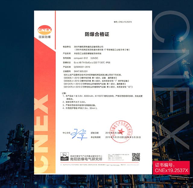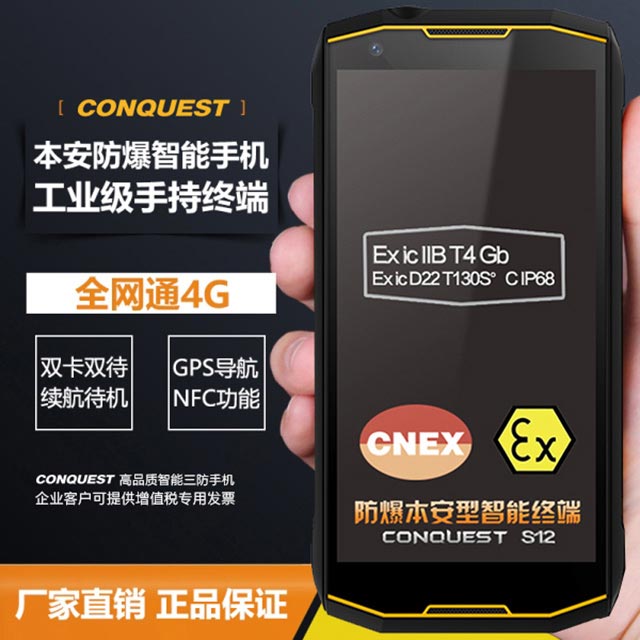 康凱思特通訊設(shè)備有限公司推出的征服(CONQUEST)S12安全型防爆手持終端已通過中國石油和化學(xué)工業(yè)電氣產(chǎn)品防爆質(zhì)量監(jiān)督檢驗中心的防爆檢測,并取得了相應(yīng)的防爆合格證。該防爆手持設(shè)備采用本質(zhì)安全型電路設(shè)計,適用于具有IIC級的爆炸性混合物的危險場所,如石油、化工、倉儲、碼頭和礦山等行業(yè)。