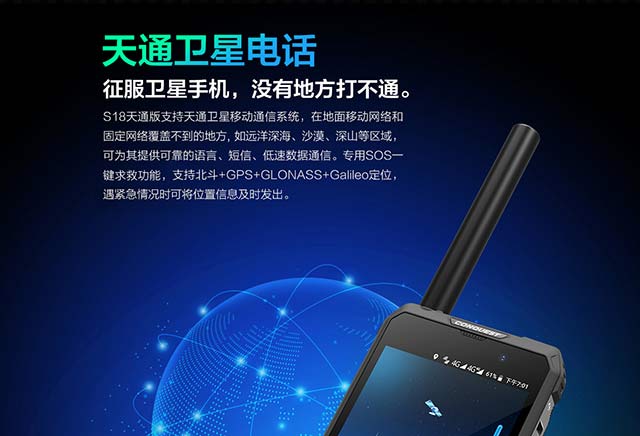 防水:天通一號(hào)衛(wèi)星手機(jī)主要用于戶外,所以不得不考慮防水防塵能力,不同手機(jī)的防水能力不同。CONQUST S18天通一號(hào)衛(wèi)星手機(jī)的防水等級(jí)是IP68。基本上每個(gè)機(jī)型都考慮了防水能力,只是強(qiáng)度不同。