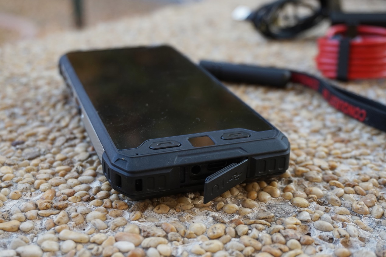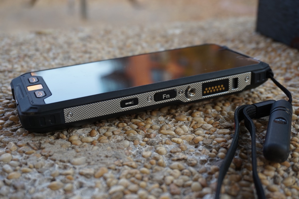 手機(jī)的背面,可以看到后蓋遍布防滑的炭纖維紋路及C形防護(hù)設(shè)計(jì),中間是存放sim卡的卡蓋,隨機(jī)附帶有一字形螺絲刀配件用于開(kāi)/鎖sim卡蓋。各處細(xì)節(jié)都采用了非常戶外風(fēng)格的語(yǔ)言來(lái)進(jìn)行設(shè)計(jì),看上去十分硬派可靠。