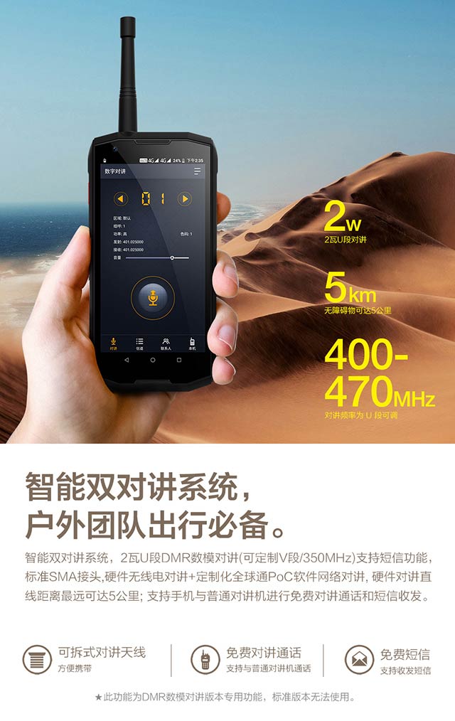 第二個(gè)亮點(diǎn)在于數(shù)模對講功能,在手機(jī)的左側(cè)有一個(gè)一鍵對講的按鈕,三五好友出去玩的時(shí)候可以直接調(diào)頻當(dāng)對講機(jī)使用,對戶外的人員來說,堪稱完美。
