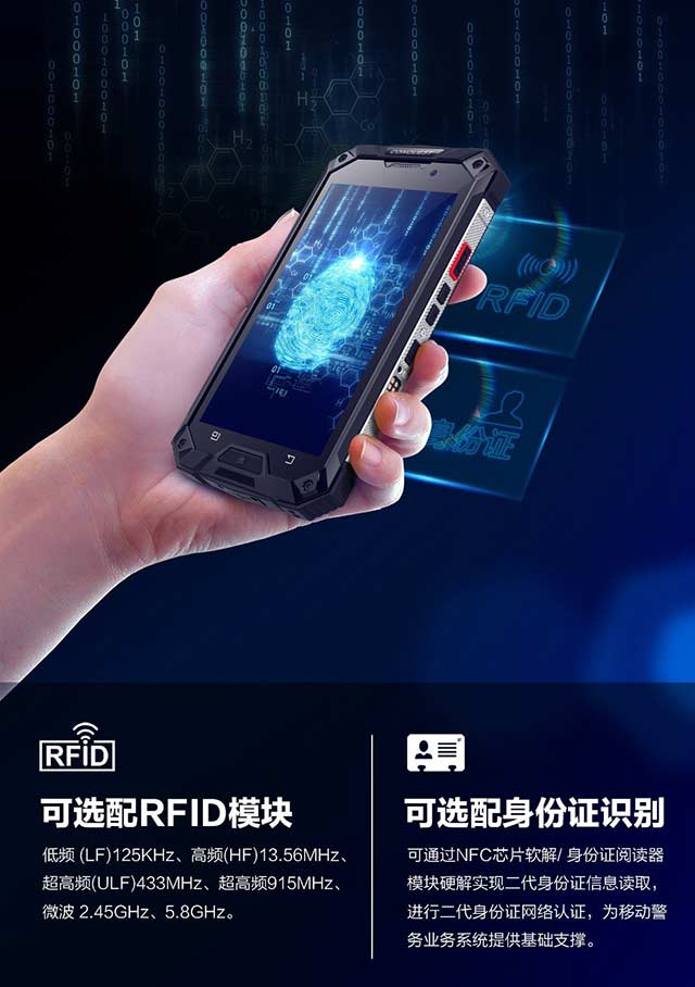 征服四防物聯(lián)網(wǎng)防爆智能終端標(biāo)配RFID模塊低頻125KHZ、高頻13.56MHZ、915MHZ、5.8G、2.4G微波等,遨游工業(yè)物聯(lián)網(wǎng)手持終端(可定制一維、二維掃描頭)、指紋識別、電力抄表等。征服CONQUEST :專業(yè)定制RFID三防智能手機(jī),全網(wǎng)通八核四防智能手機(jī)(物聯(lián)網(wǎng)手持終端)可定制一維碼二維碼、指紋識別、RFID模塊、電力紅外抄表、加密芯片安全模塊。