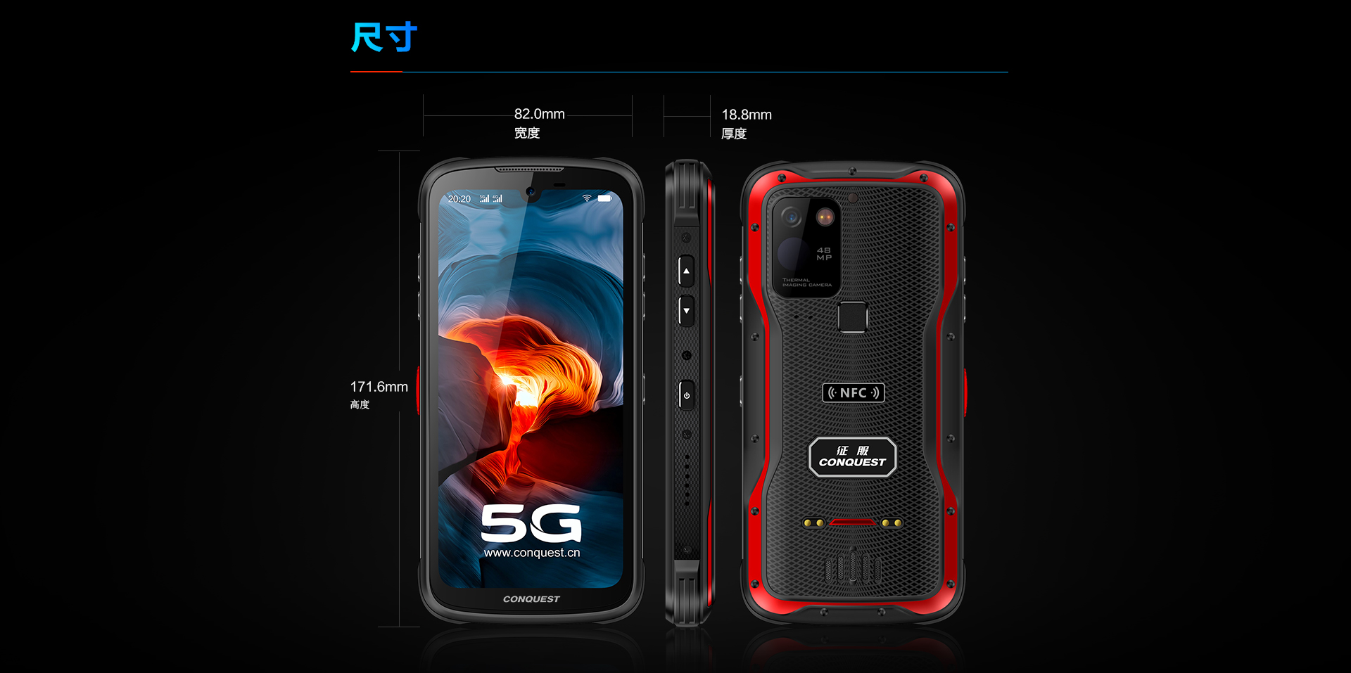 CONQUEST 征服S20 5G防爆手機(jī)EX化工廠石油天然氣燃?xì)庵扑幹悄苋廊W(wǎng)通工業(yè)手持巡檢終端 5G電力巡檢終端 8G+128G