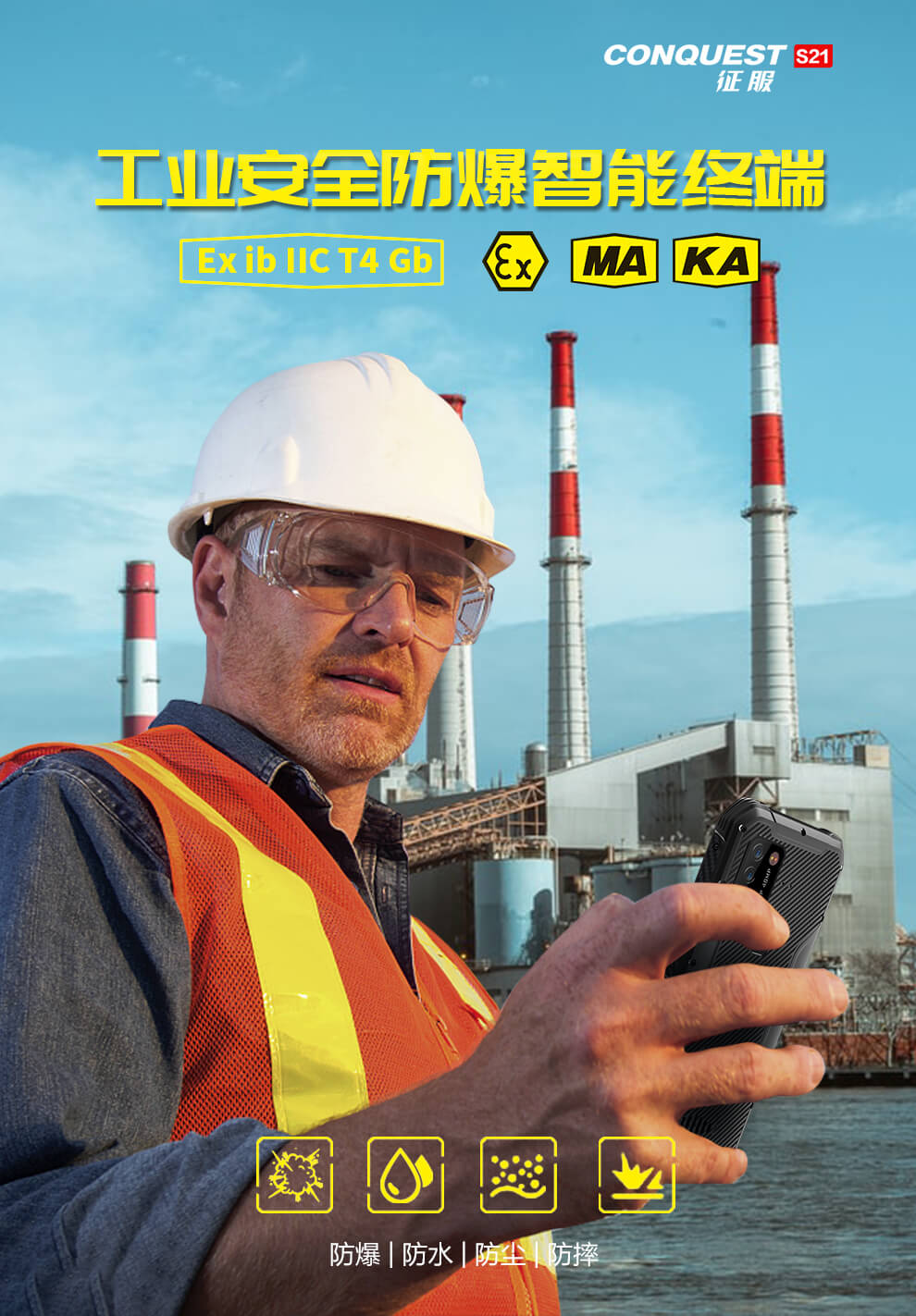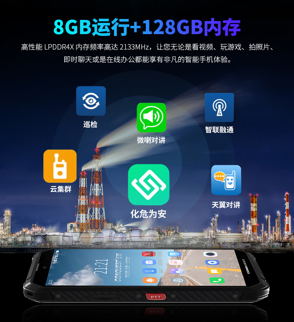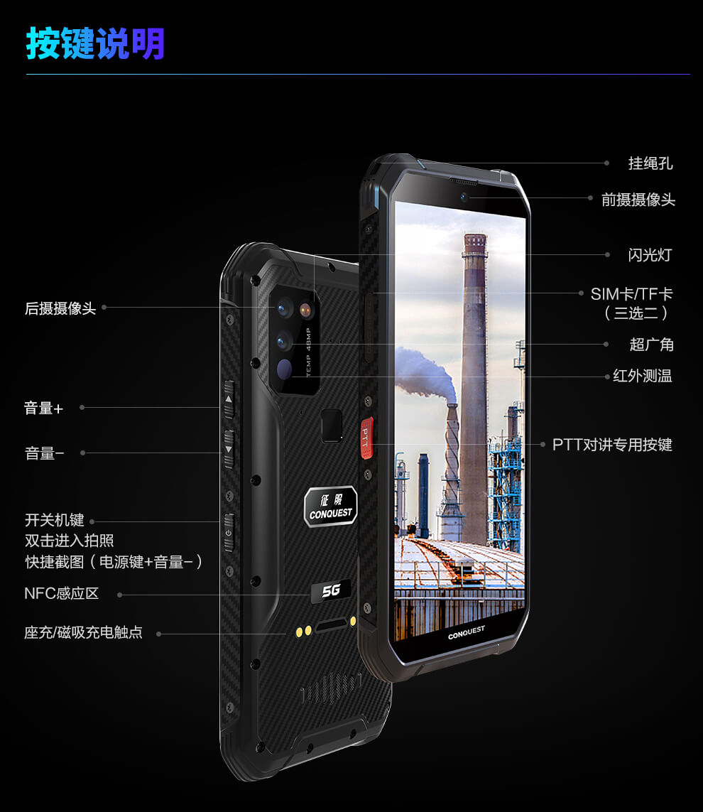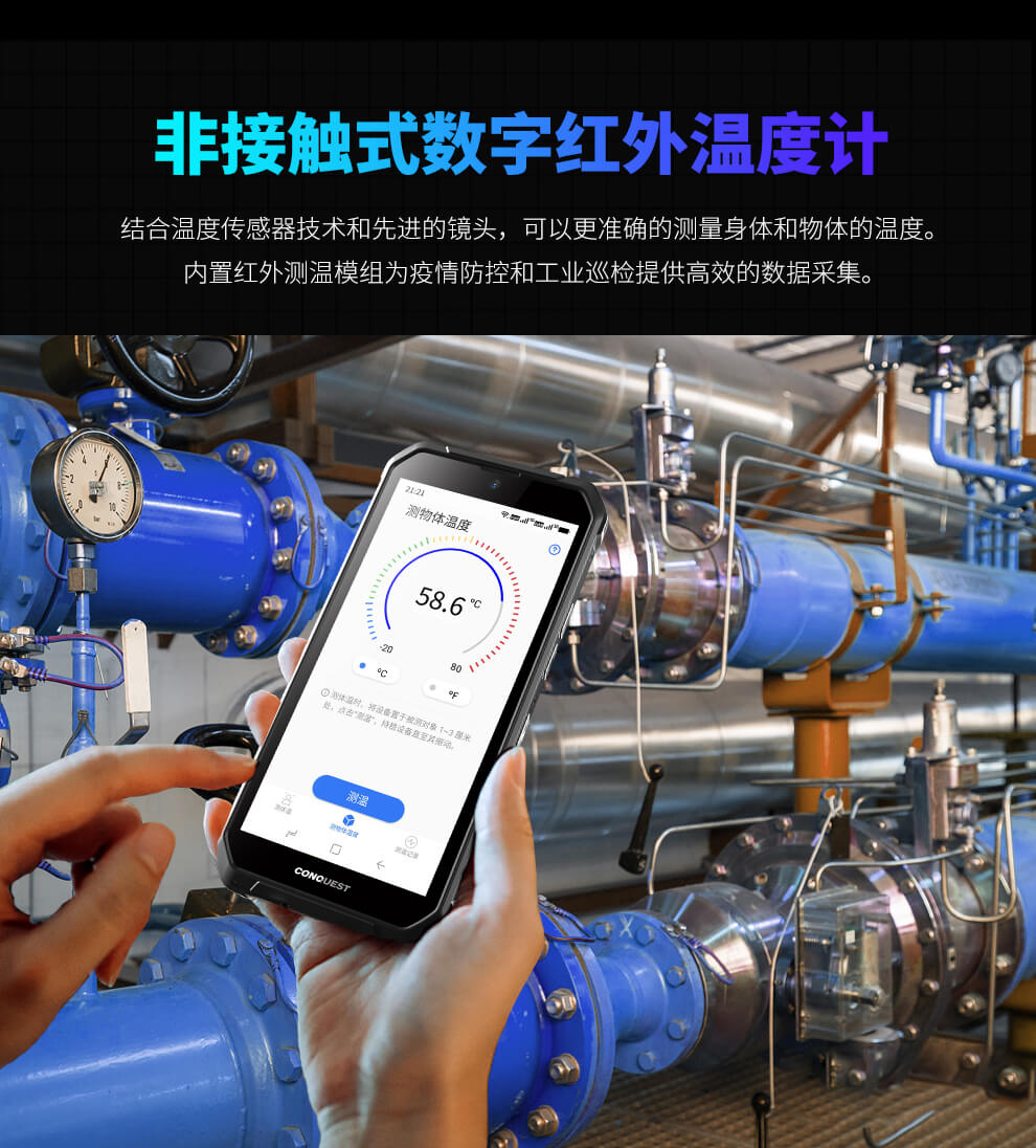 CONQUEST 征服S21 5G危化品防爆手機(jī)紅外測溫化工廠石油天然氣燃?xì)庵扑幹悄苋廊W(wǎng)通工業(yè)手持巡檢終端 雙重控防防爆終端