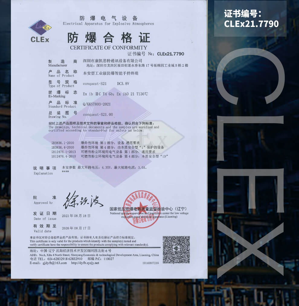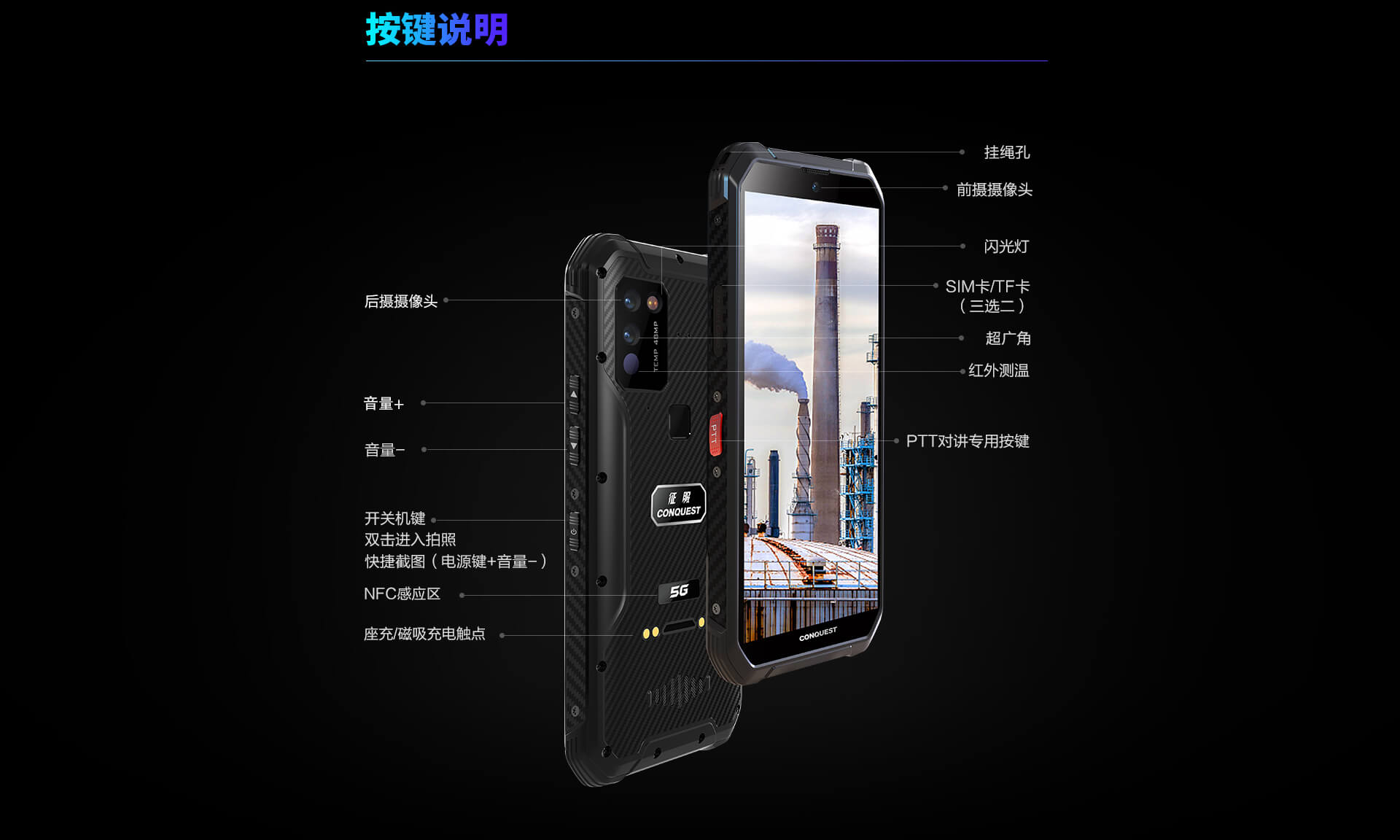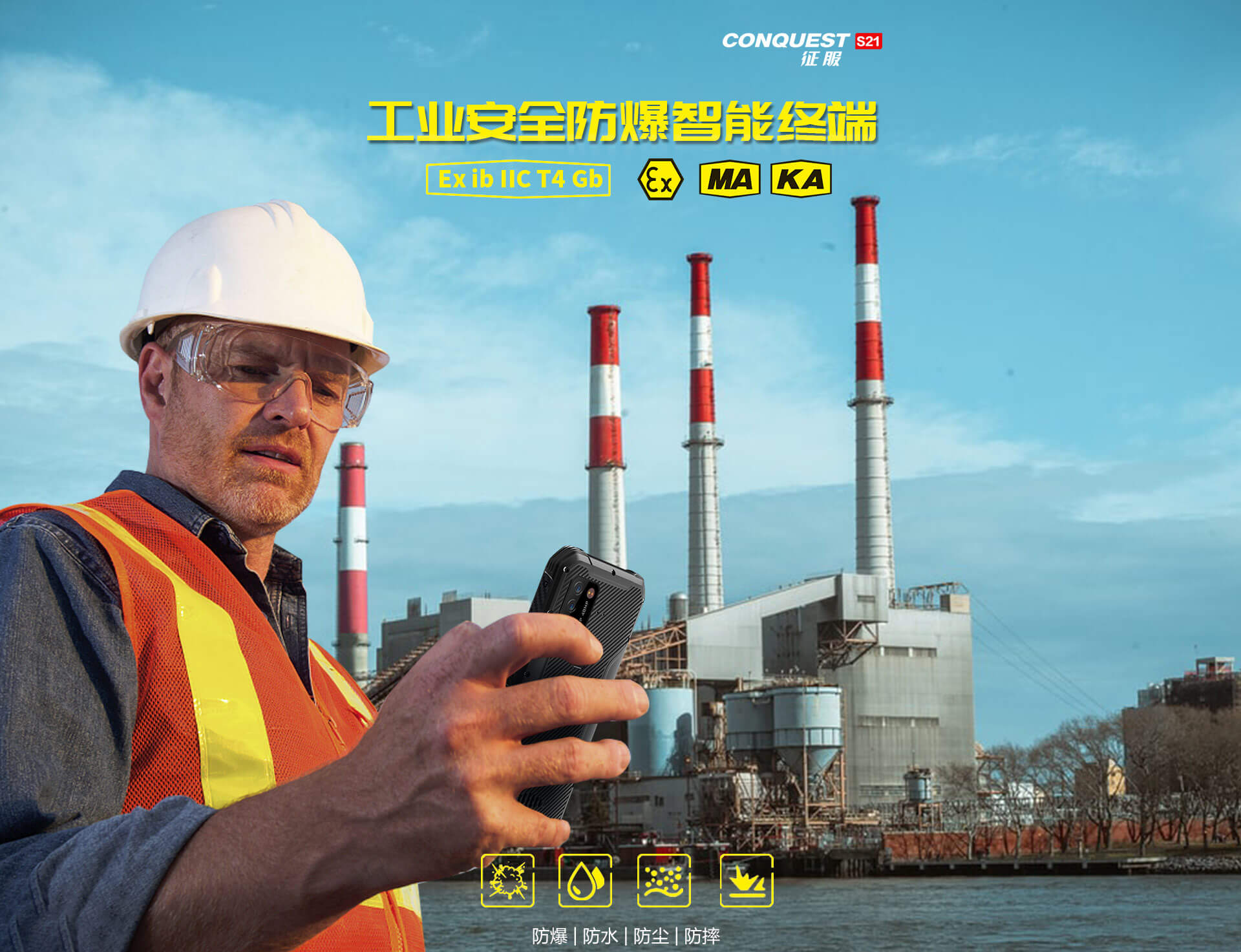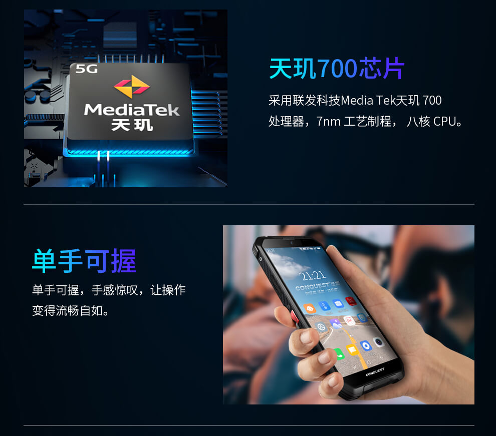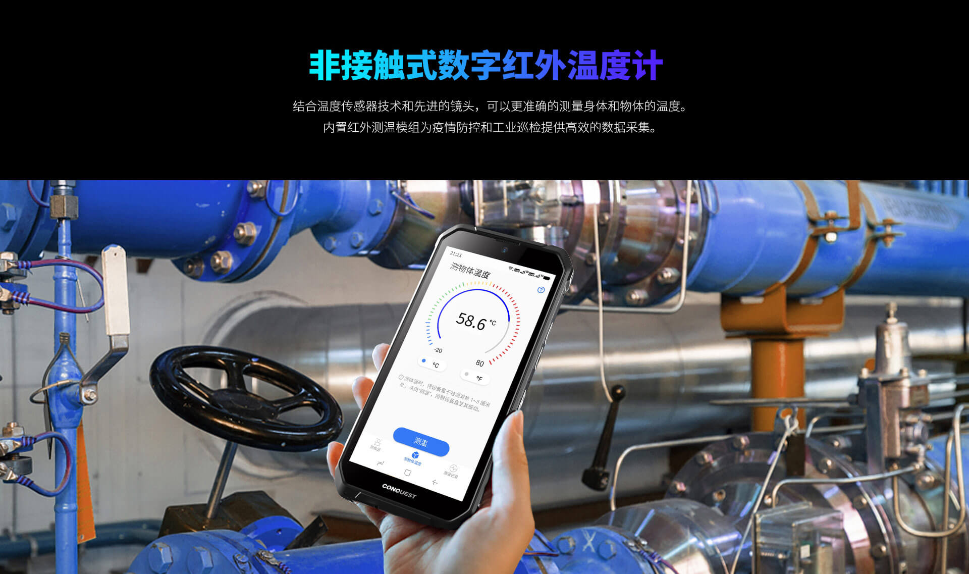 CONQUEST 征服S21 5G危化品防爆手機(jī)紅外測溫化工廠石油天然氣燃?xì)庵扑幹悄苋廊W(wǎng)通工業(yè)手持巡檢終端 雙重控防防爆終端