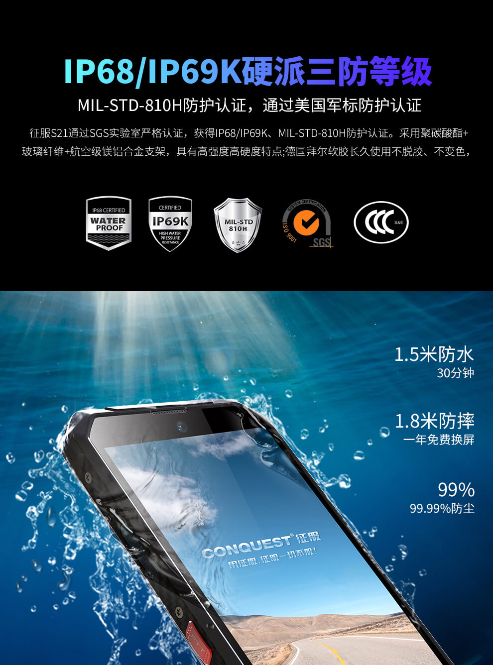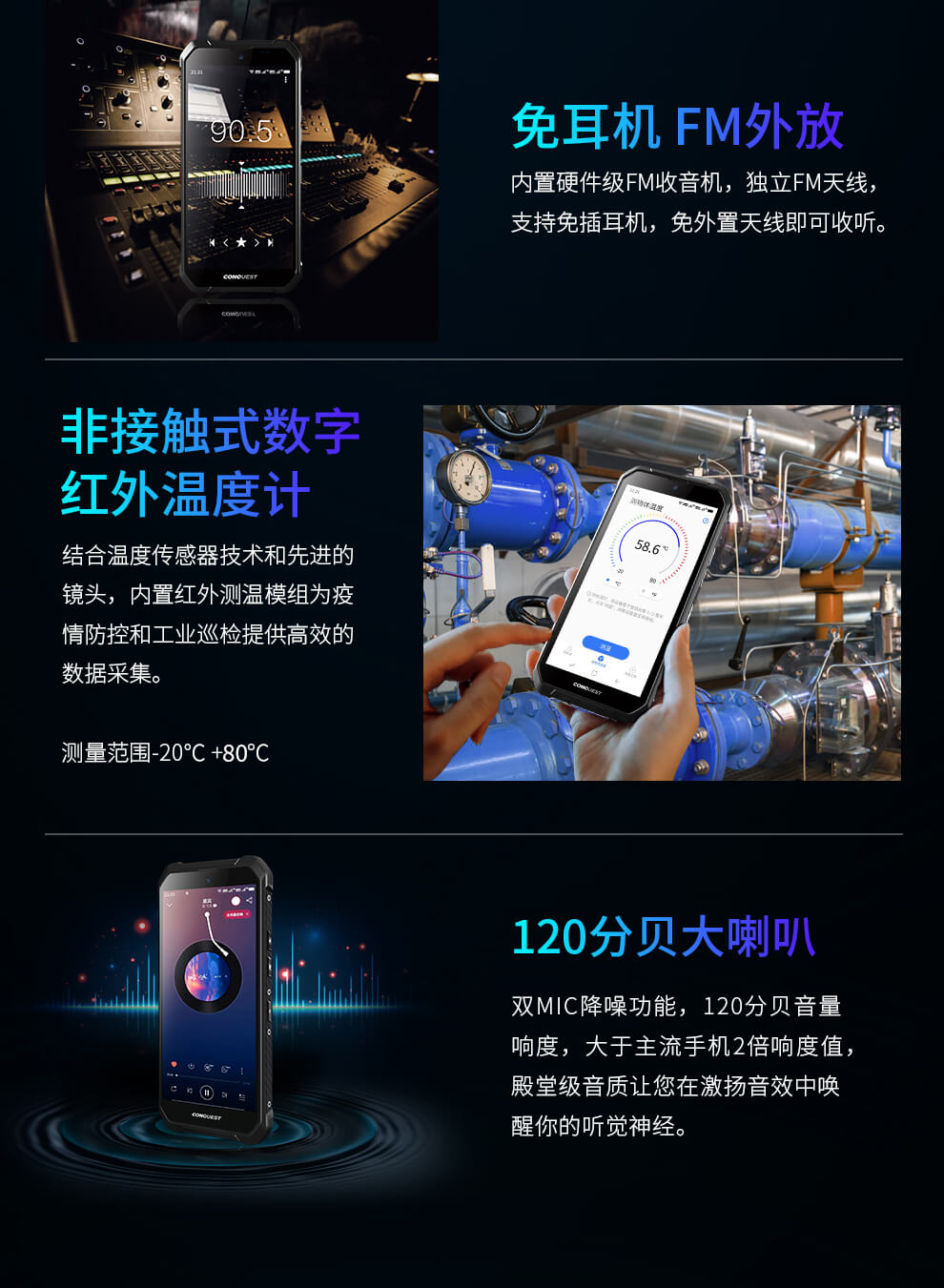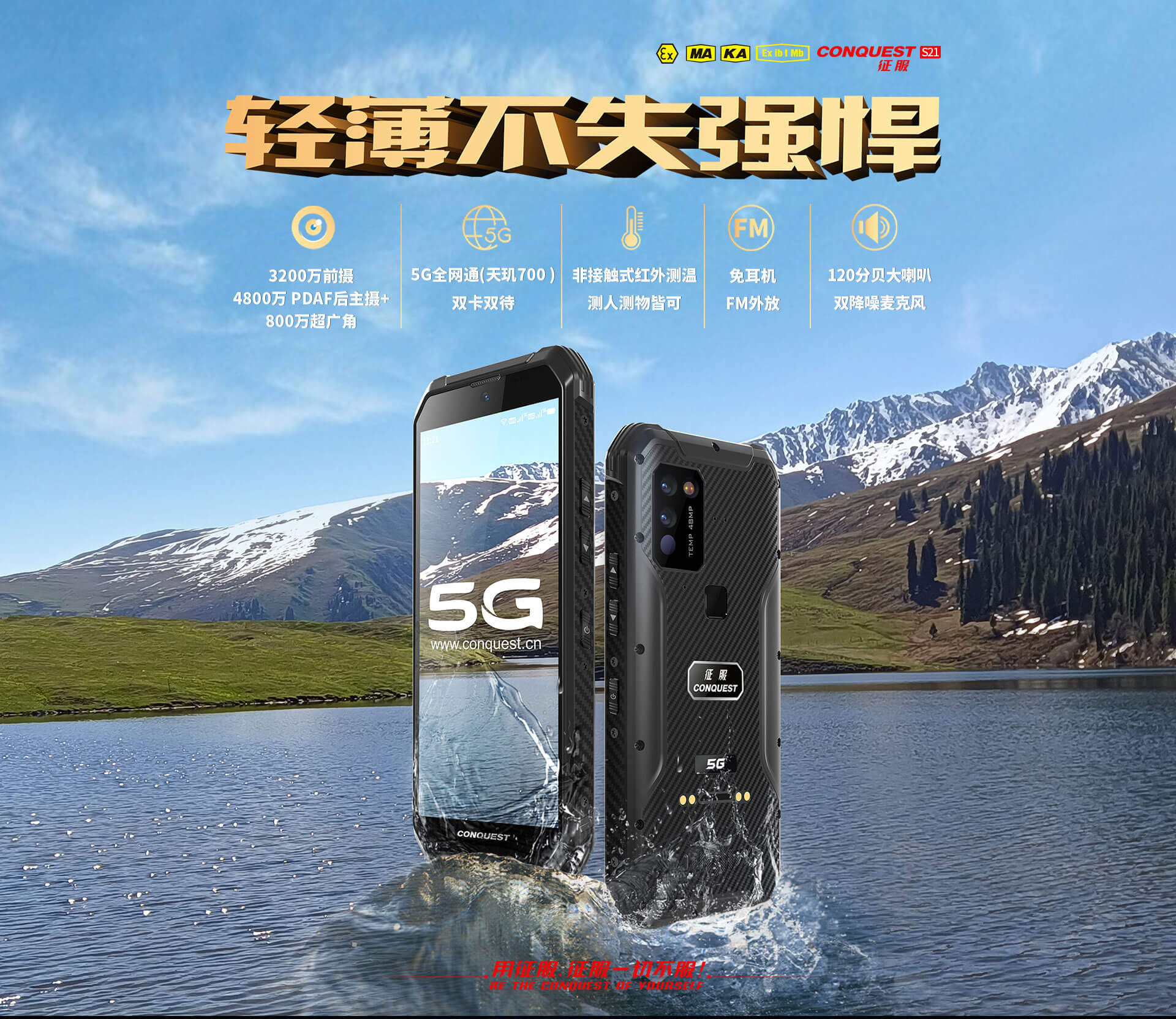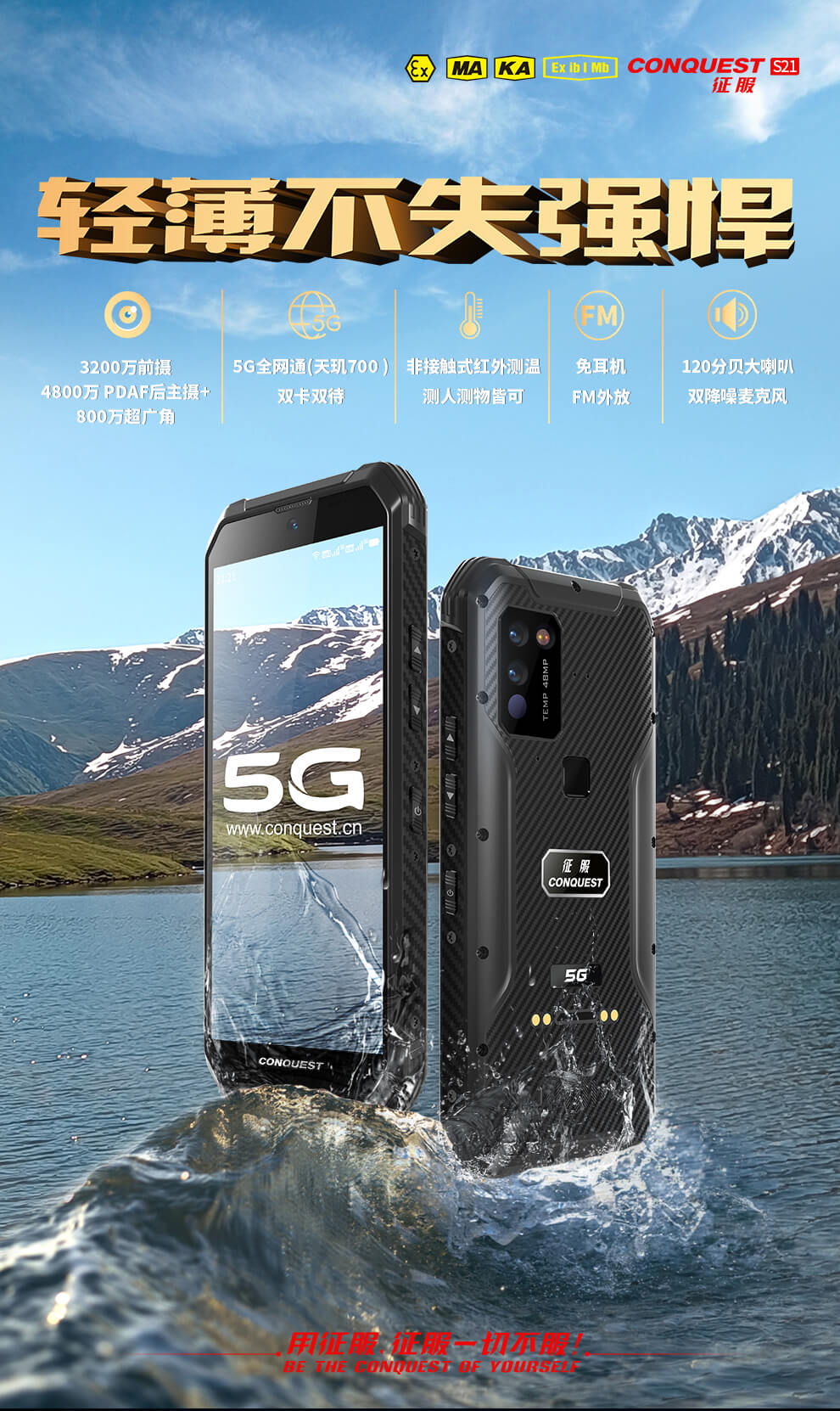 CONQUEST 征服S21 5G危化品防爆手機(jī)紅外測溫化工廠石油天然氣燃?xì)庵扑幹悄苋廊W(wǎng)通工業(yè)手持巡檢終端 雙重控防防爆終端