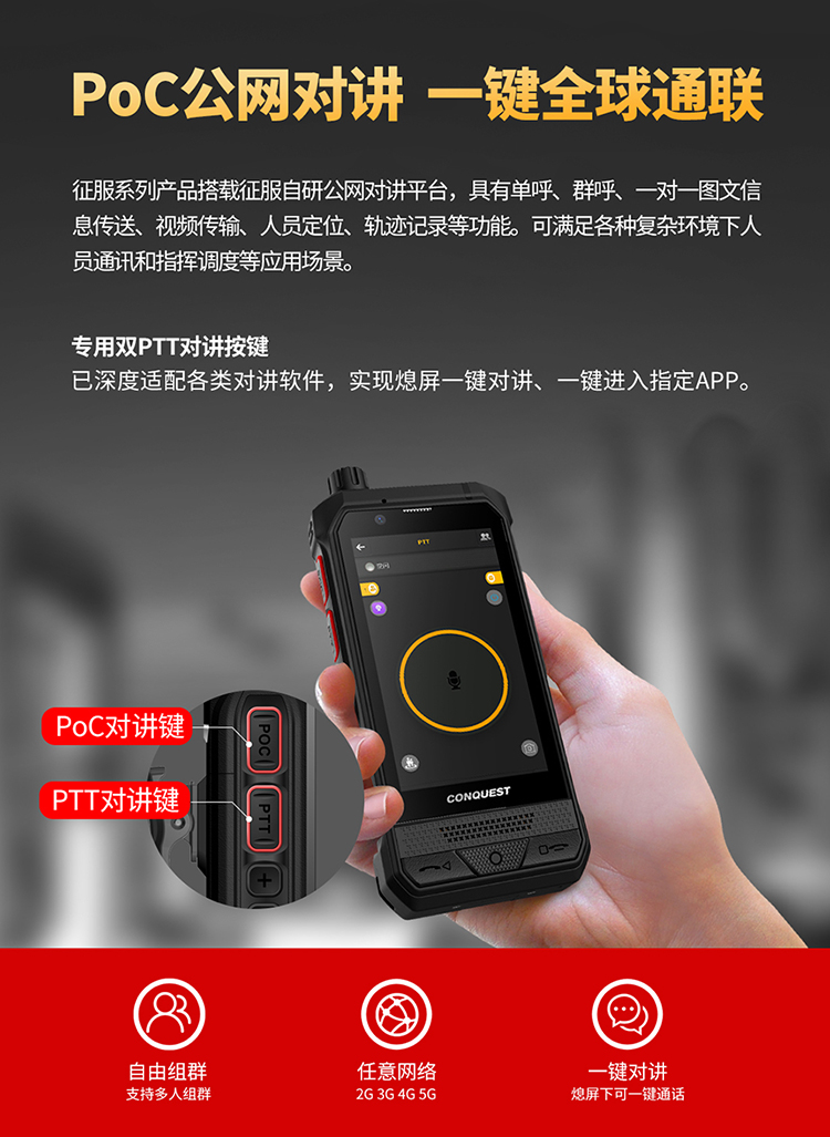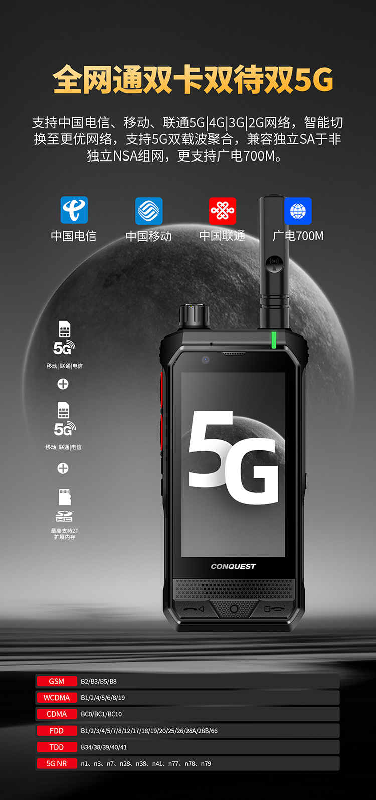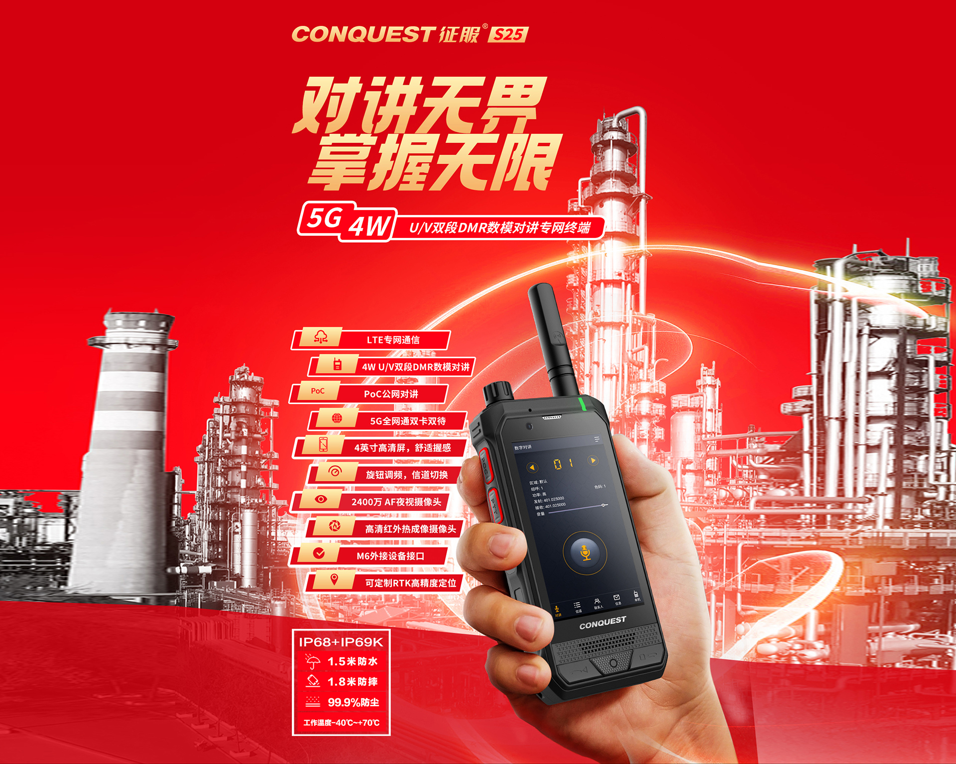 CONQUEST征服S25 5G DMR數(shù)模對(duì)講石化煤安雙重防爆認(rèn)證智能專(zhuān)網(wǎng)終端