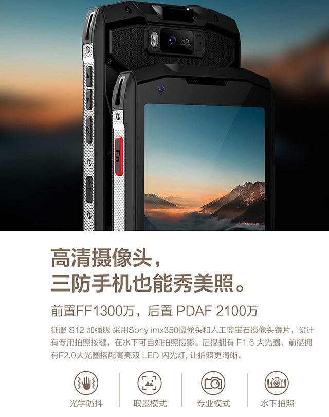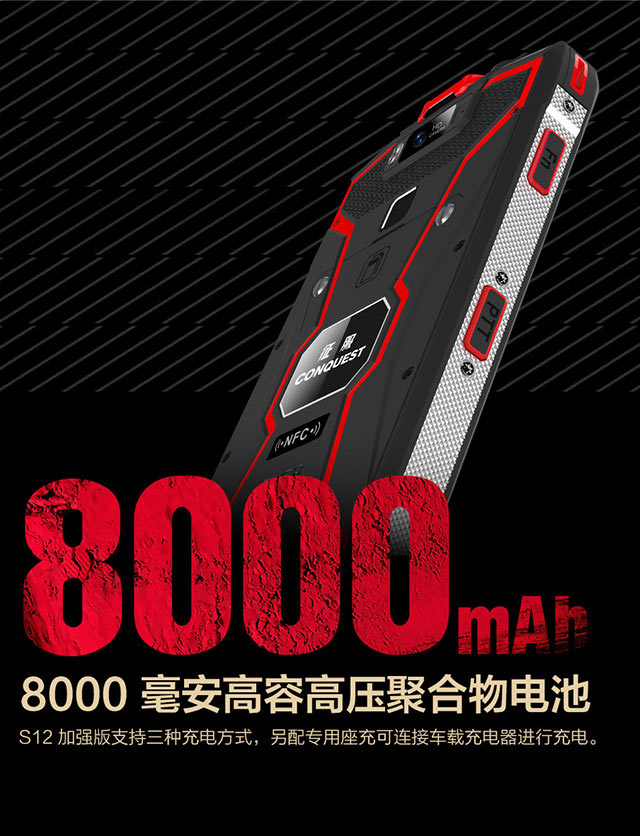 CONQUEST征服 S12工業(yè)防爆手機除了支持POC無線網(wǎng)絡(luò)對講,還支持DMR數(shù)模一體硬件窄帶專網(wǎng)對講,支持400MHZ-450MHZ對講頻段。是征服品牌第一款DMR數(shù)模一體對講三防智能通訊終端,支持LTE 4G通信、數(shù)字對講、模擬對講、POC公網(wǎng)對講手機,采用八核處理器、5.99英寸FHD+(2160*1080)高清分辨率。八核2.5GHZ處理器、支持6G+128G機身存儲,可支持512GB內(nèi)存。原生安卓9.0操作系統(tǒng),4G雙VOLTE技術(shù)可同時通話上網(wǎng)。2100萬后置攝像頭、專業(yè)F/1.8大光圈、PDAF相位對焦。不僅可以拍出高清照片,還可進行水下拍攝,光線陰暗地區(qū)拍照等。