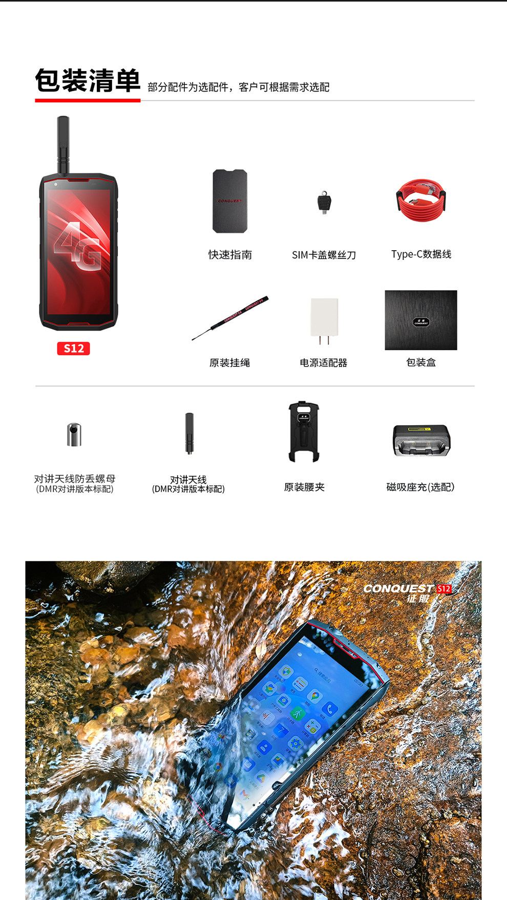 CONQUEST征服 S12 4G全網(wǎng)通智能三防手機(jī) 源頭廠家 支持定制