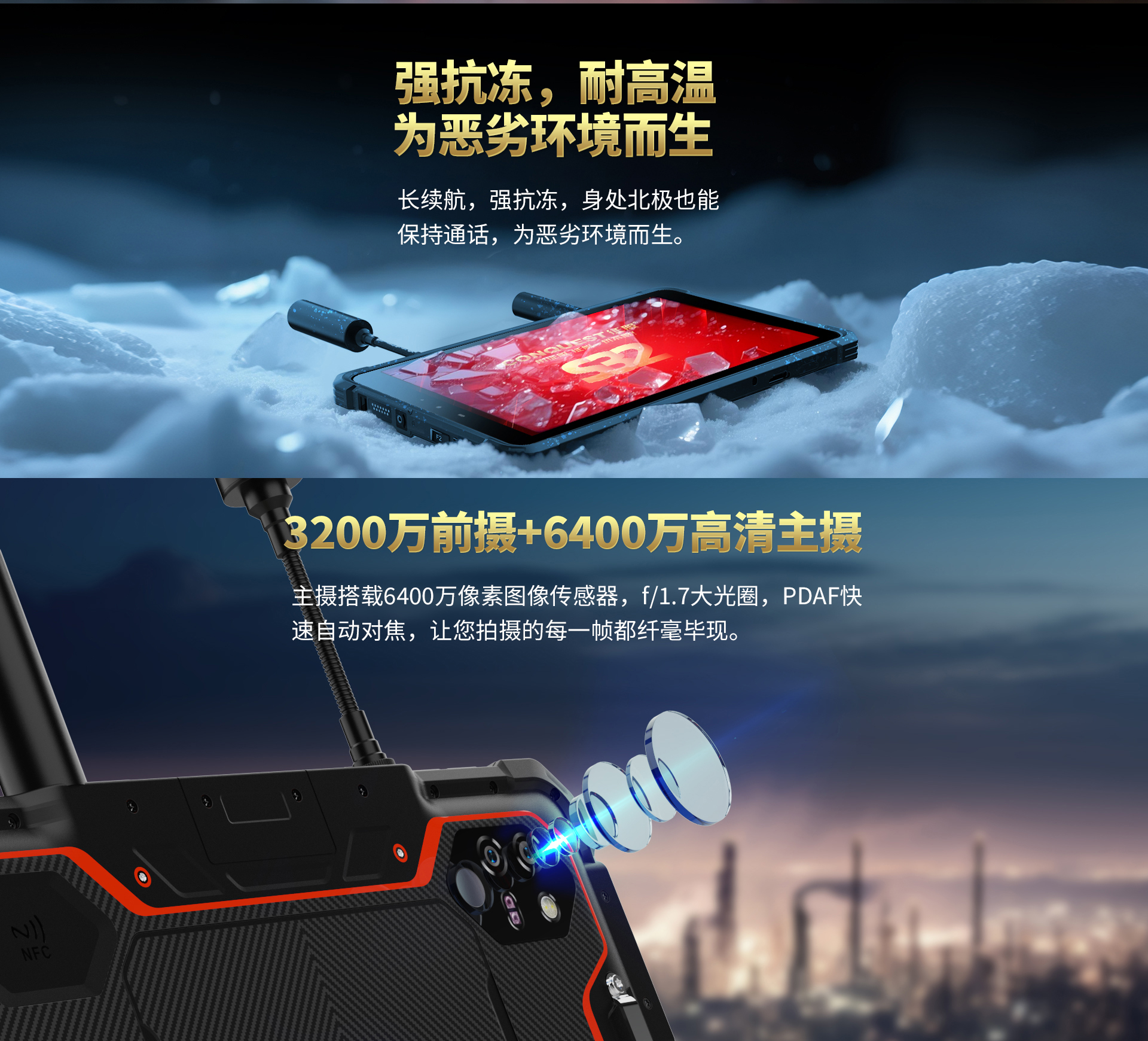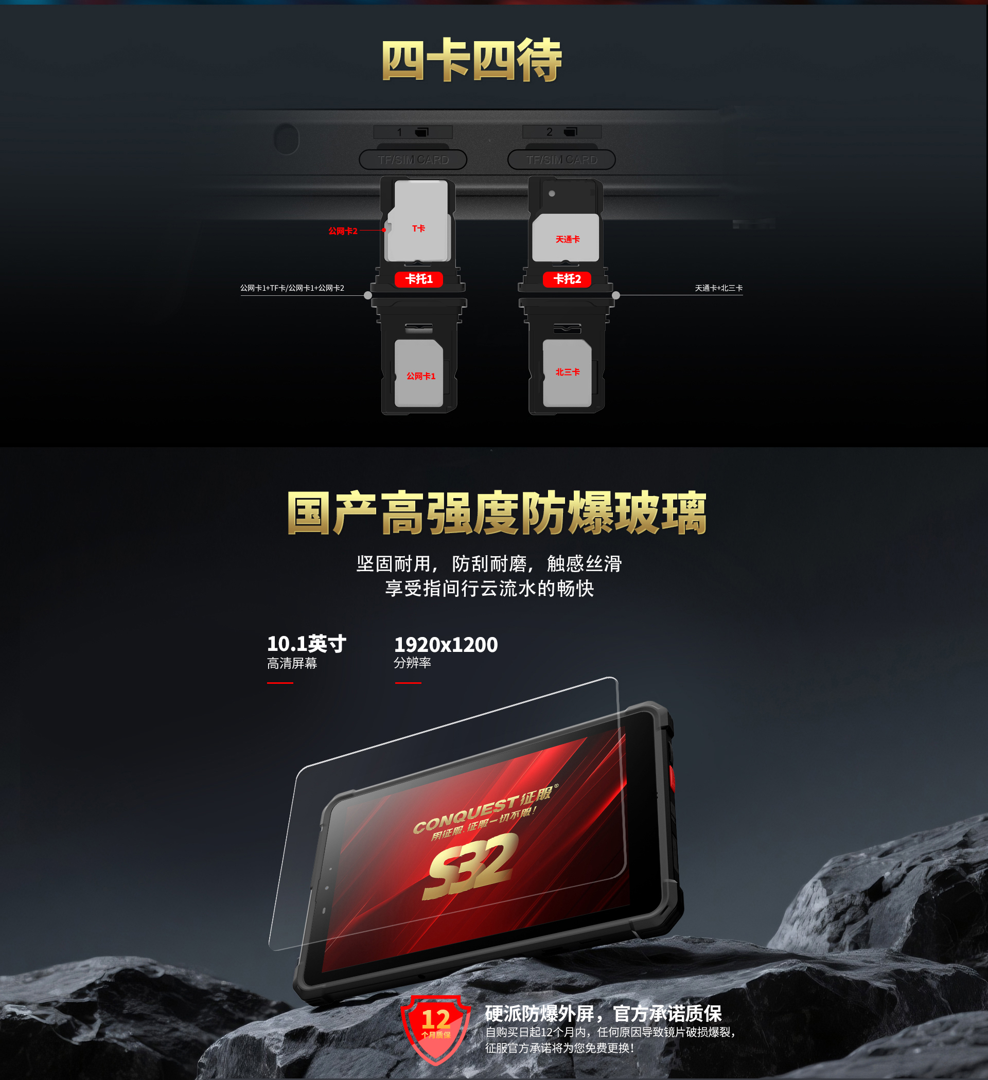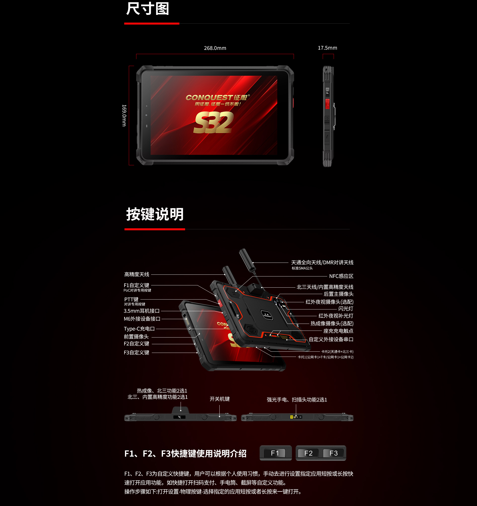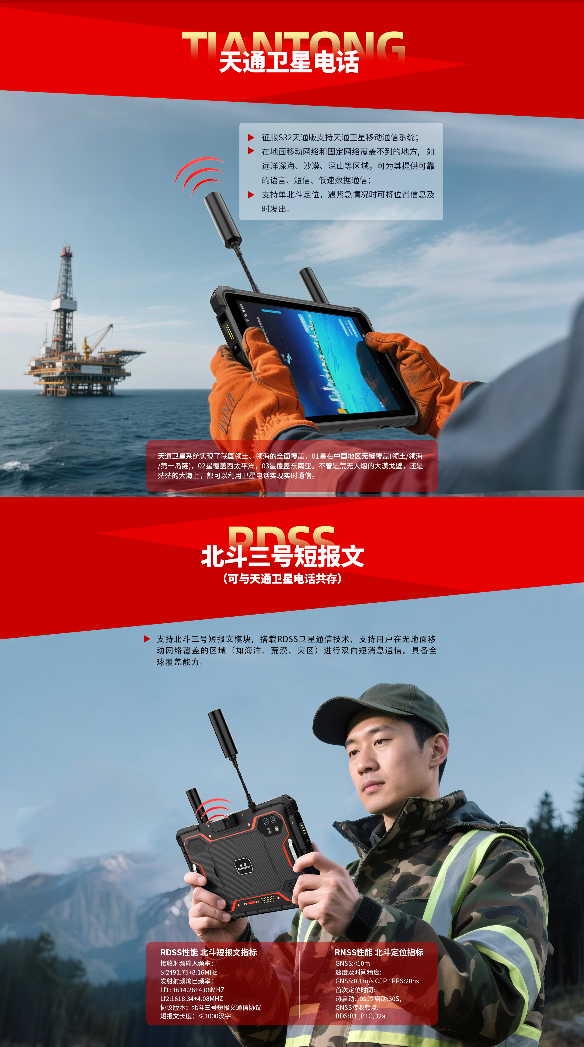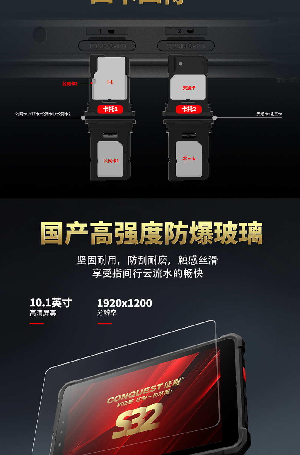 CONQUEST征服S32北斗短報(bào)文+天通衛(wèi)星電話+DMR對(duì)講,5G單北斗高精度定位三防智能平板終端!