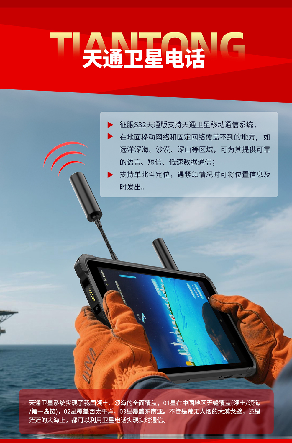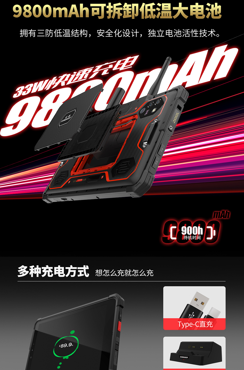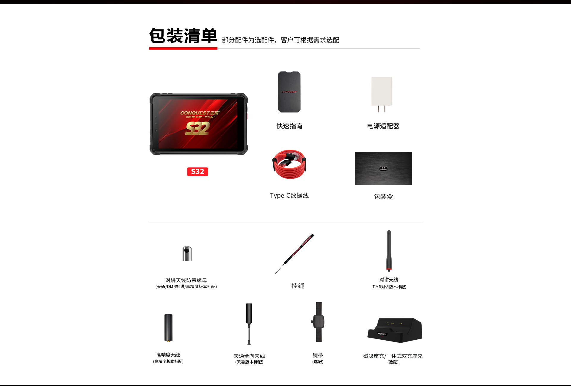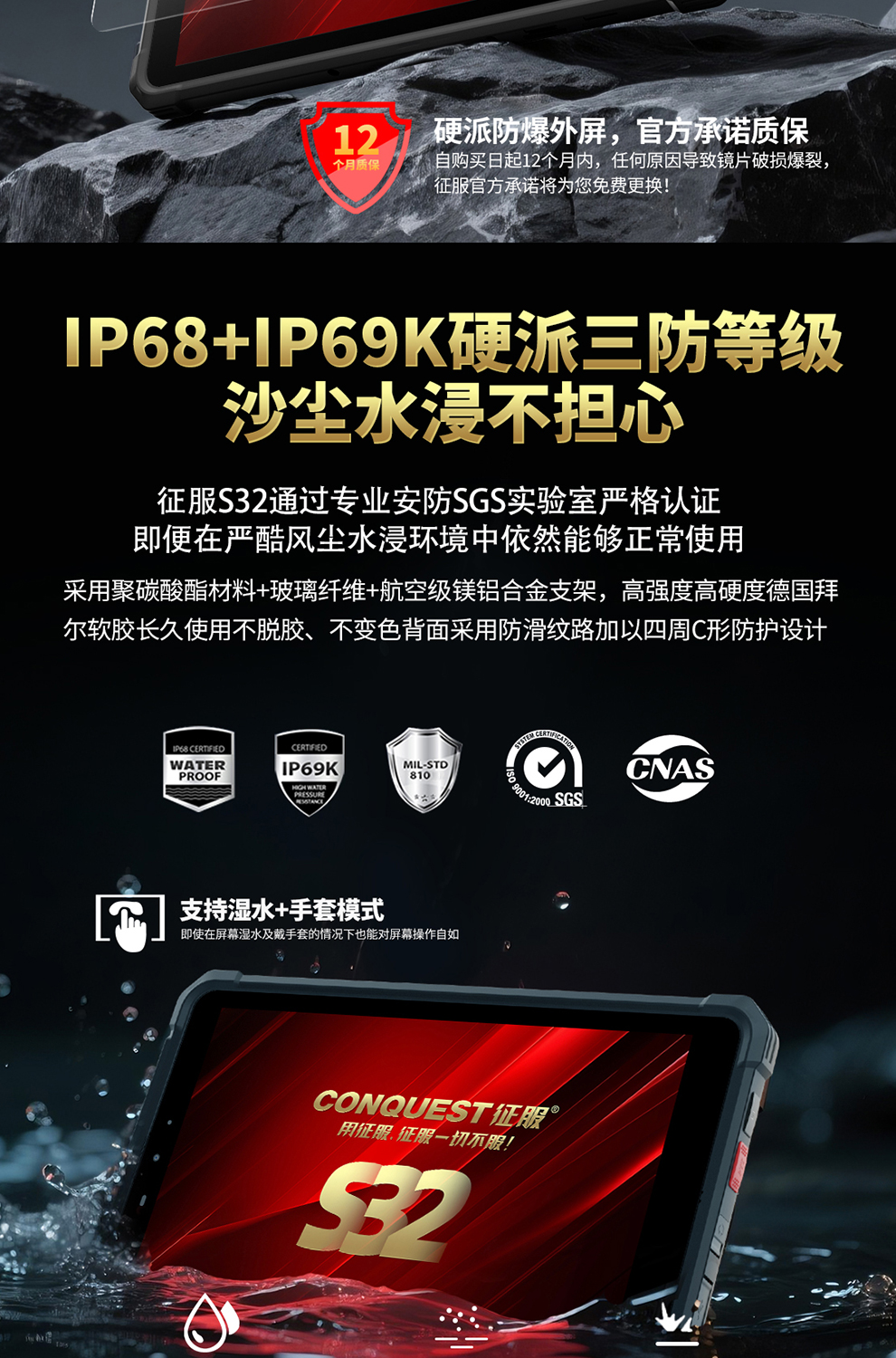 CONQUEST征服S32北斗短報(bào)文+天通衛(wèi)星電話+DMR對(duì)講,5G單北斗高精度定位三防智能平板終端!