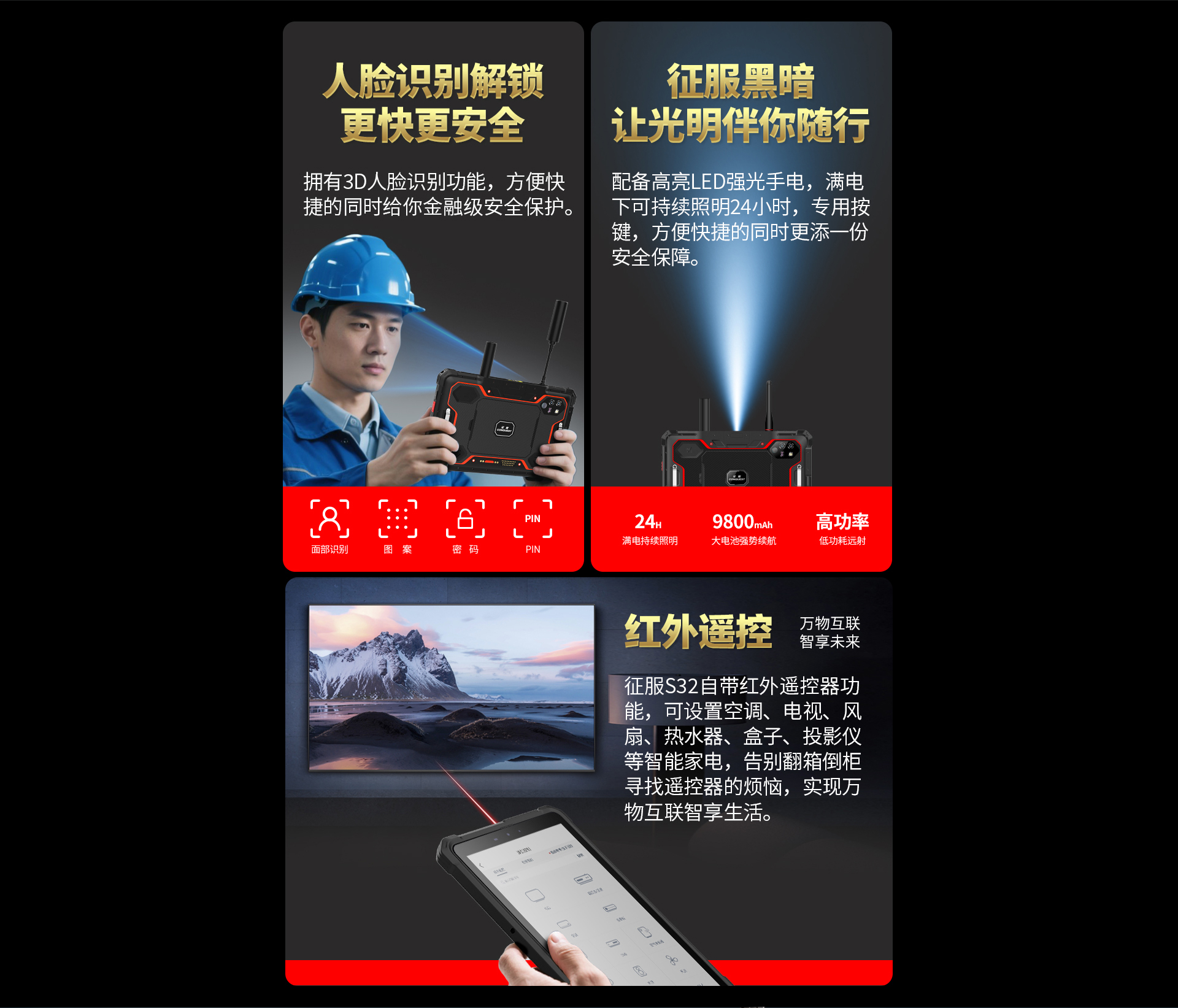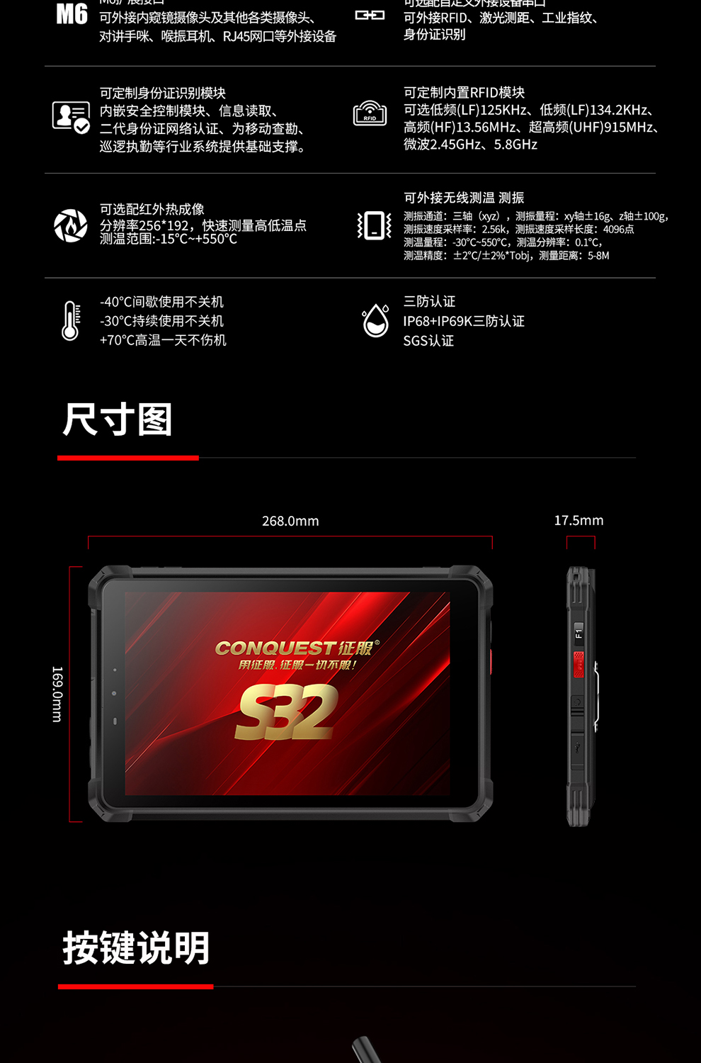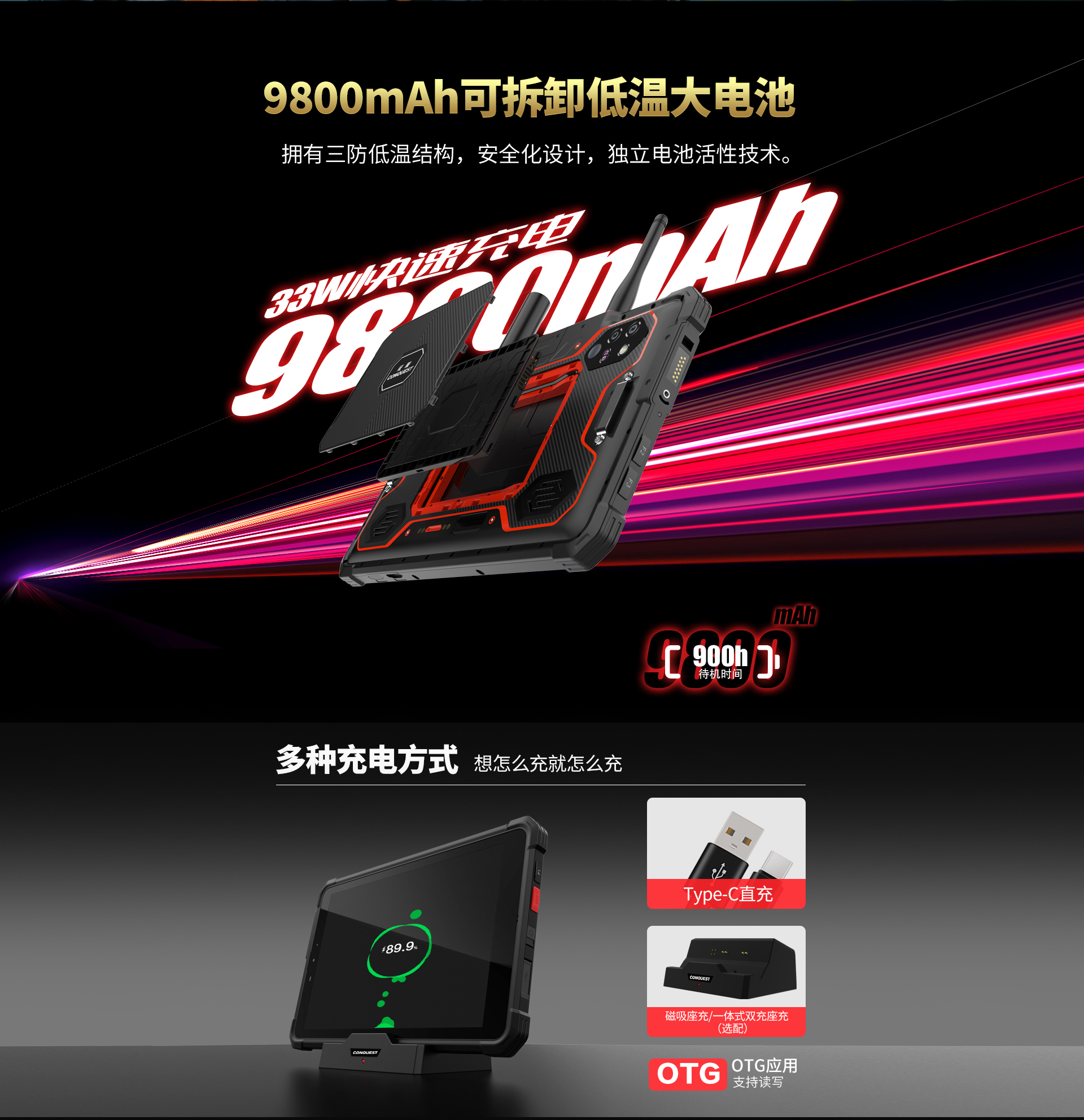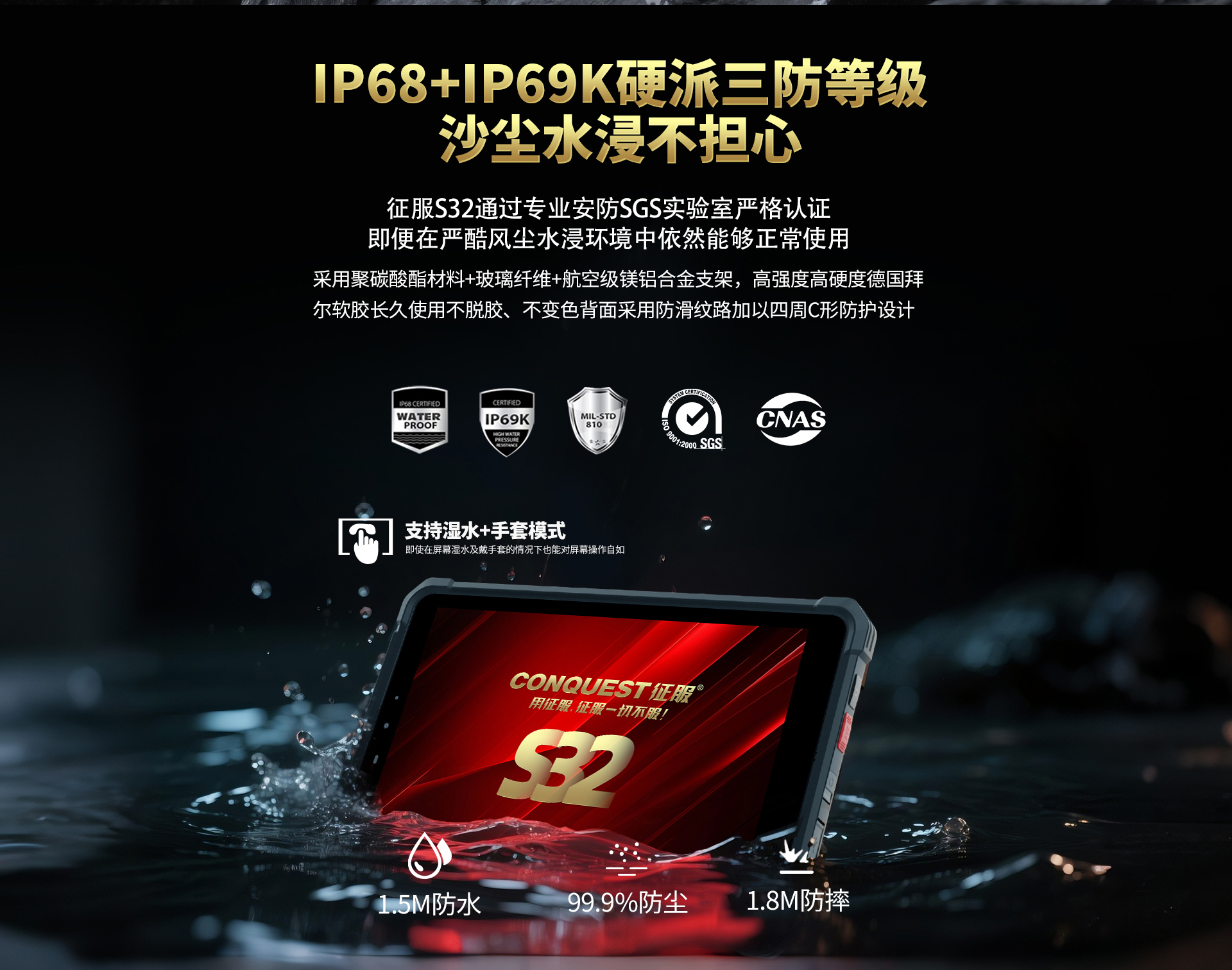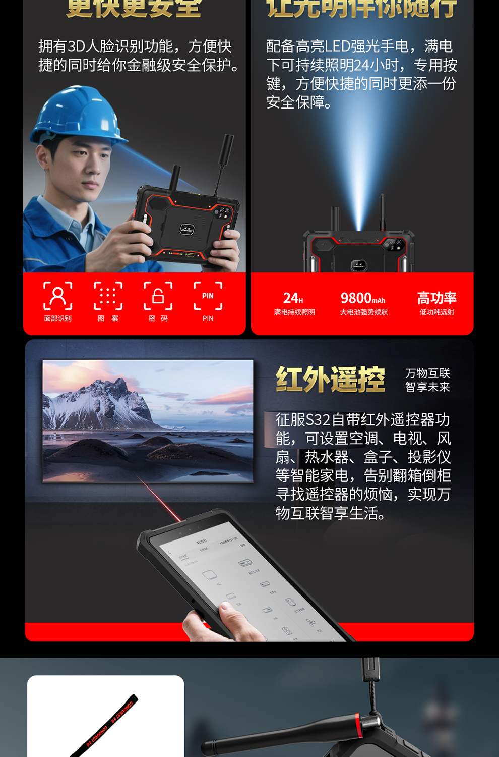 CONQUEST征服S32北斗短報(bào)文+天通衛(wèi)星電話+DMR對(duì)講,5G單北斗高精度定位三防智能平板終端!