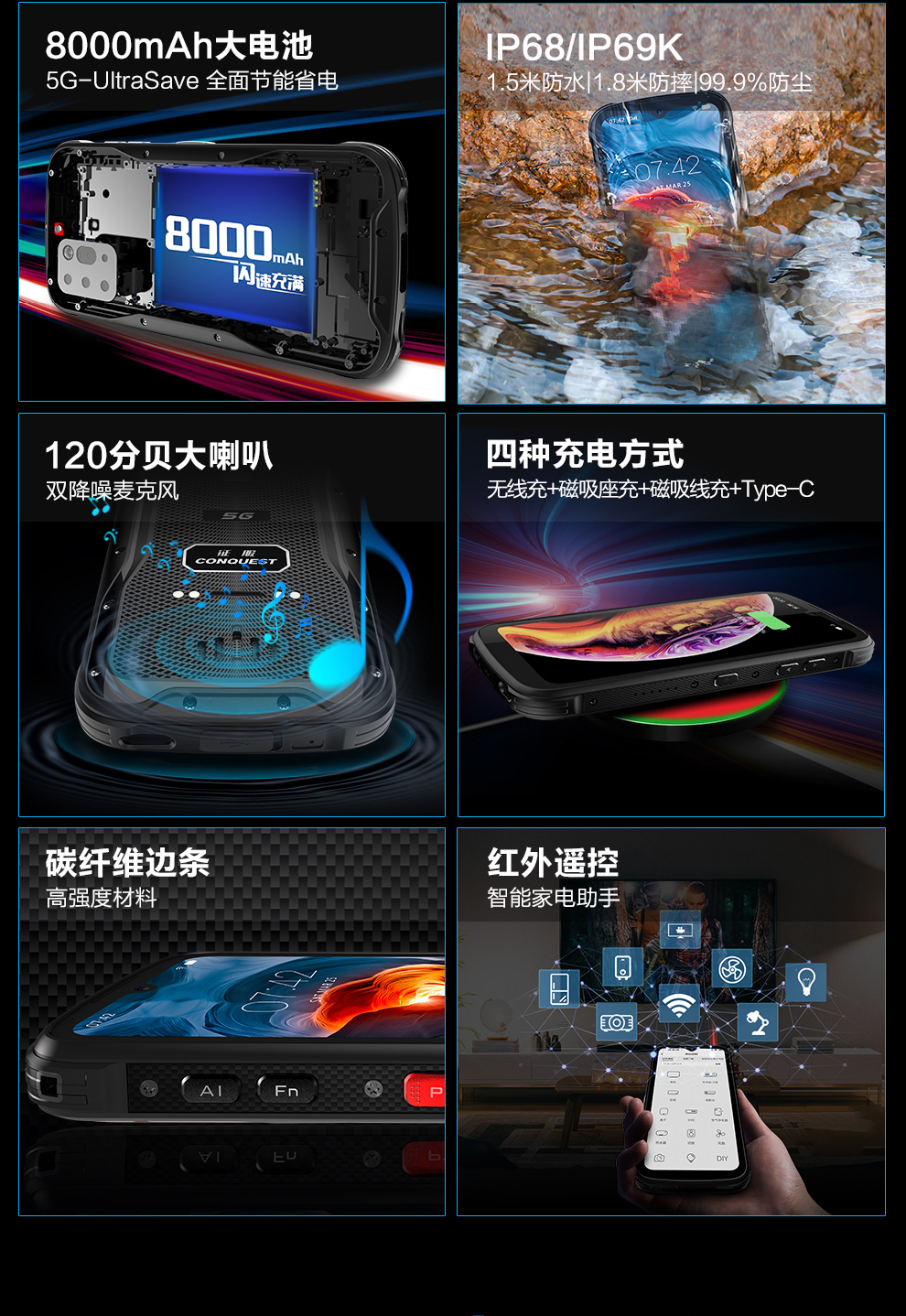 CONQUEST征服S20 5G全網(wǎng)通紅外夜視三防智能戶外防水手機(jī)4800萬四攝超長待機(jī)手持終端 電力巡檢終端