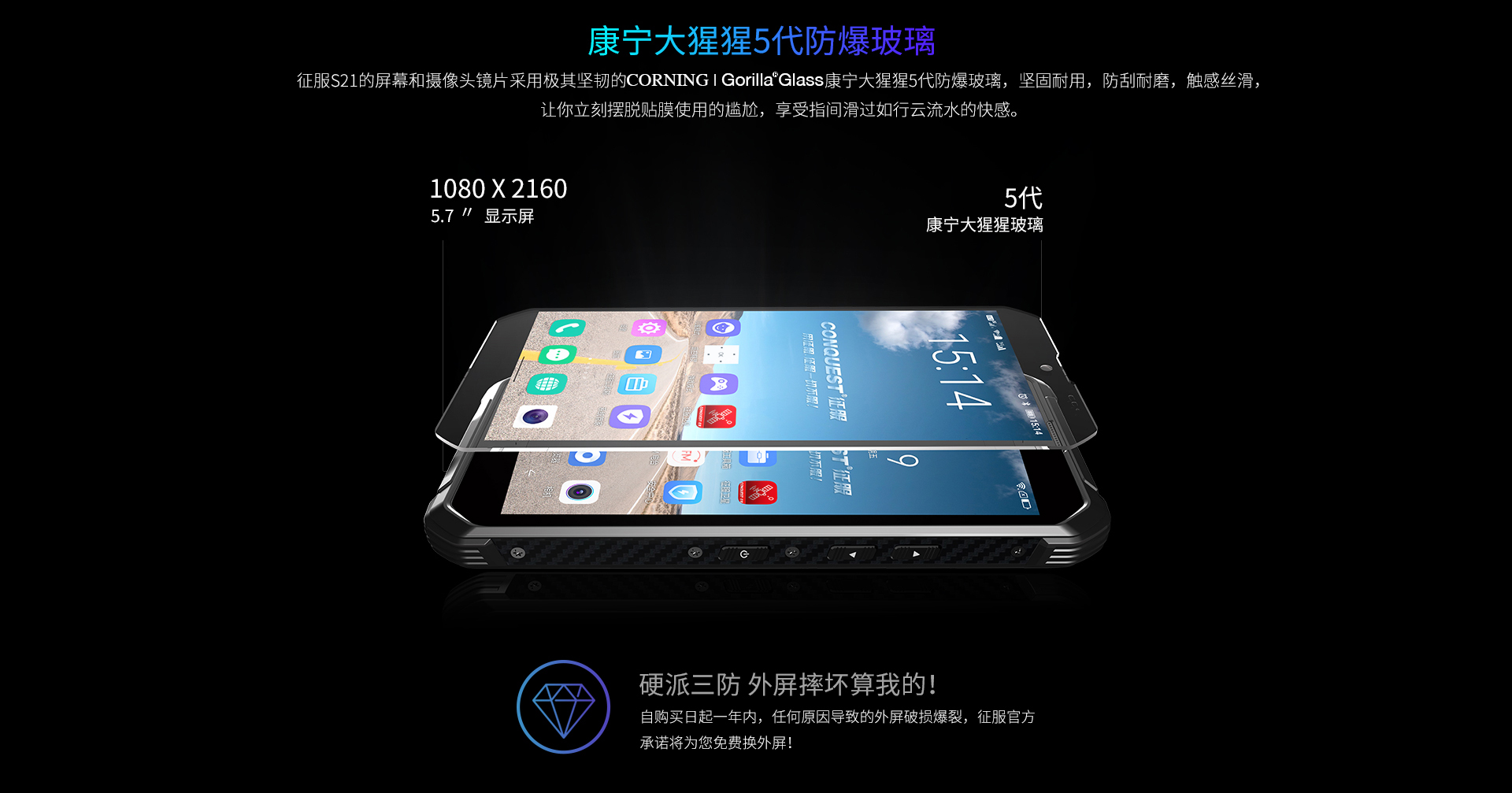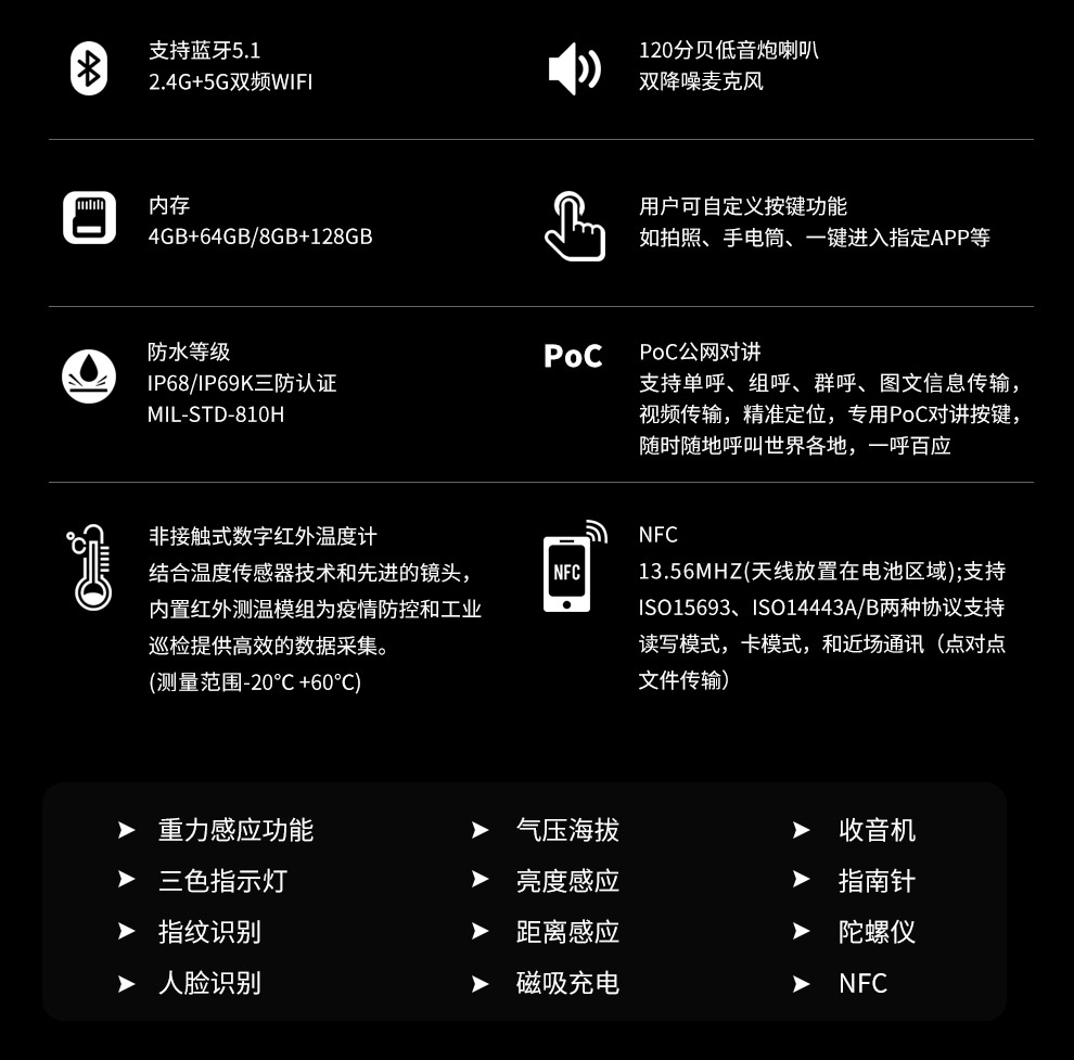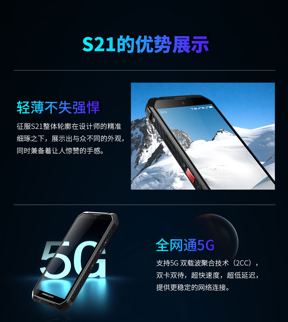 CONQUEST征服S21 5G全網(wǎng)通輕薄三防手機(jī)軍工戶外智能防爆對講手機(jī)紅外測溫
